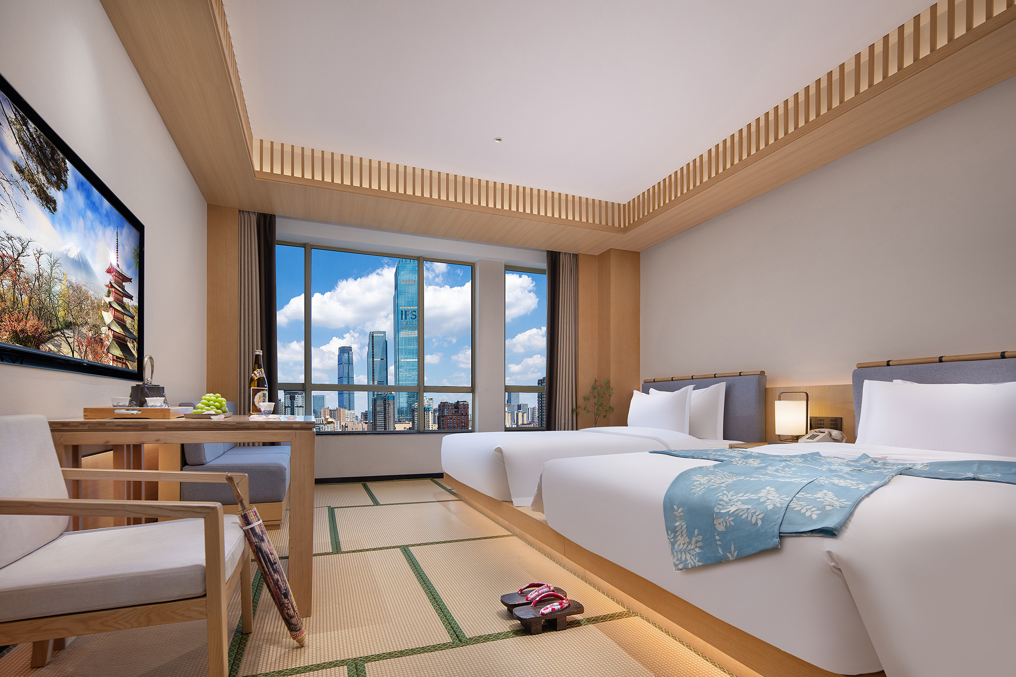 观IFS·豪华双床房|高空璀璨IFS夜景|俯瞰太平老街